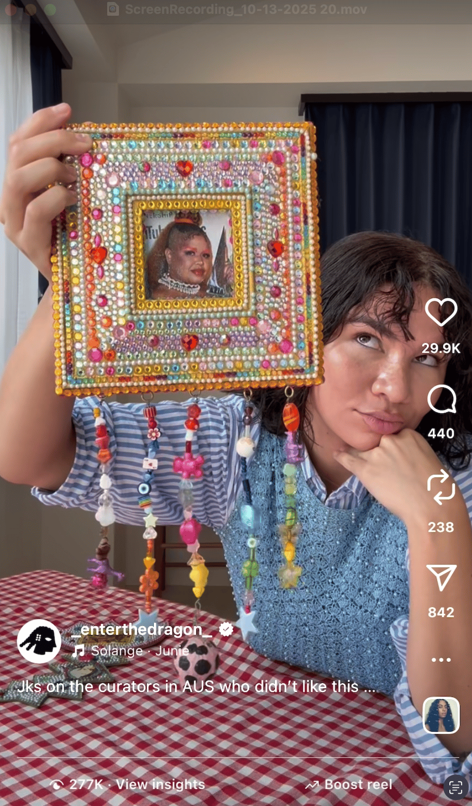 This body of work playfully challenges the expectation that Aboriginal artists must adhere to traditional dot painting styles. Each piece is a glittering act of defiance, reclaiming kitsch, celebrating humour, and embracing unfiltered happiness as a radical expression of identity.