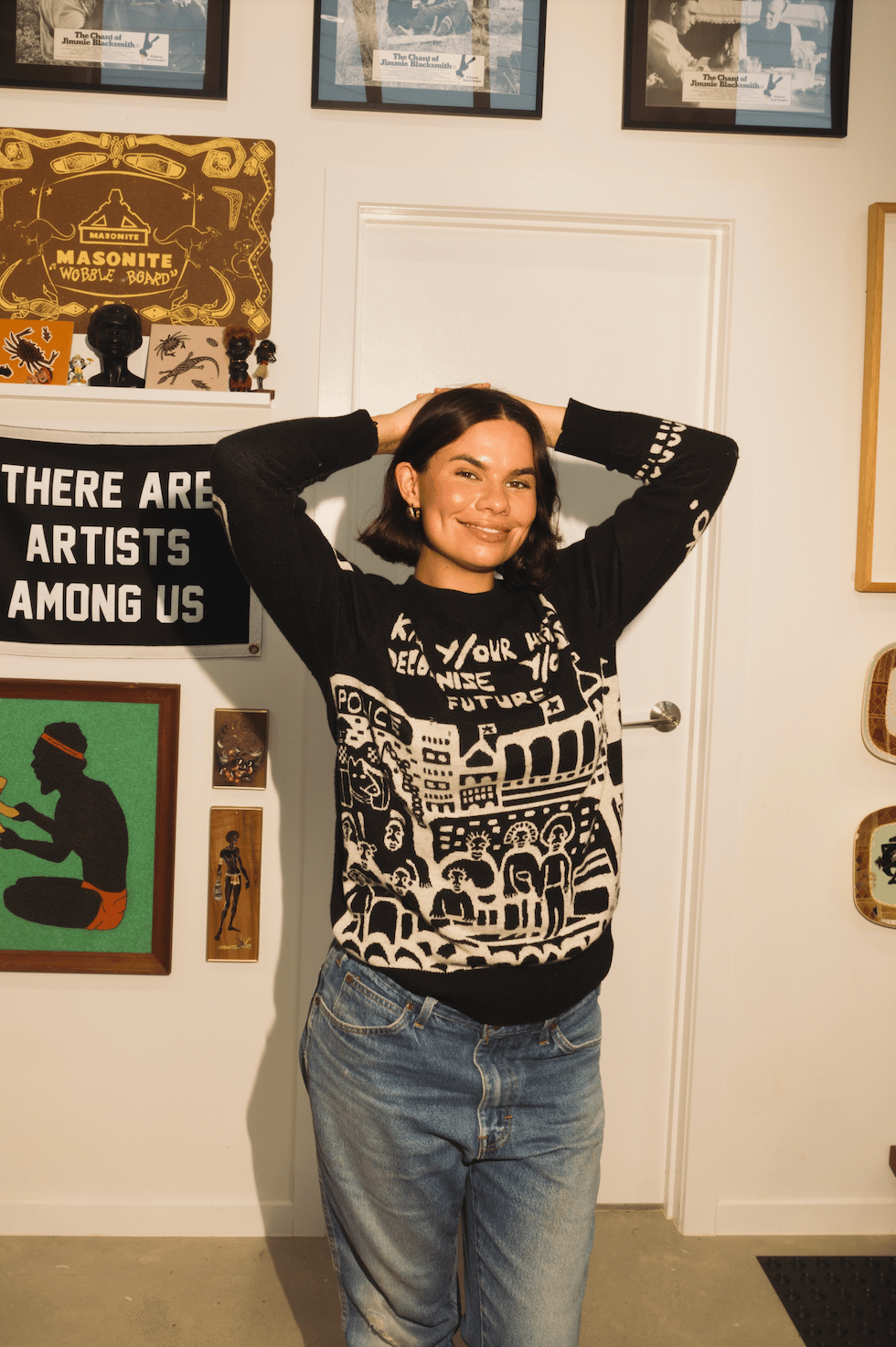 The artwork featured in this design was originally commissioned by Naarm based photographer Jamie Wdziekonski as a book cover for photojournalistic documentation of Indigenous social justice rallies in Naarm over the last 6 years.
